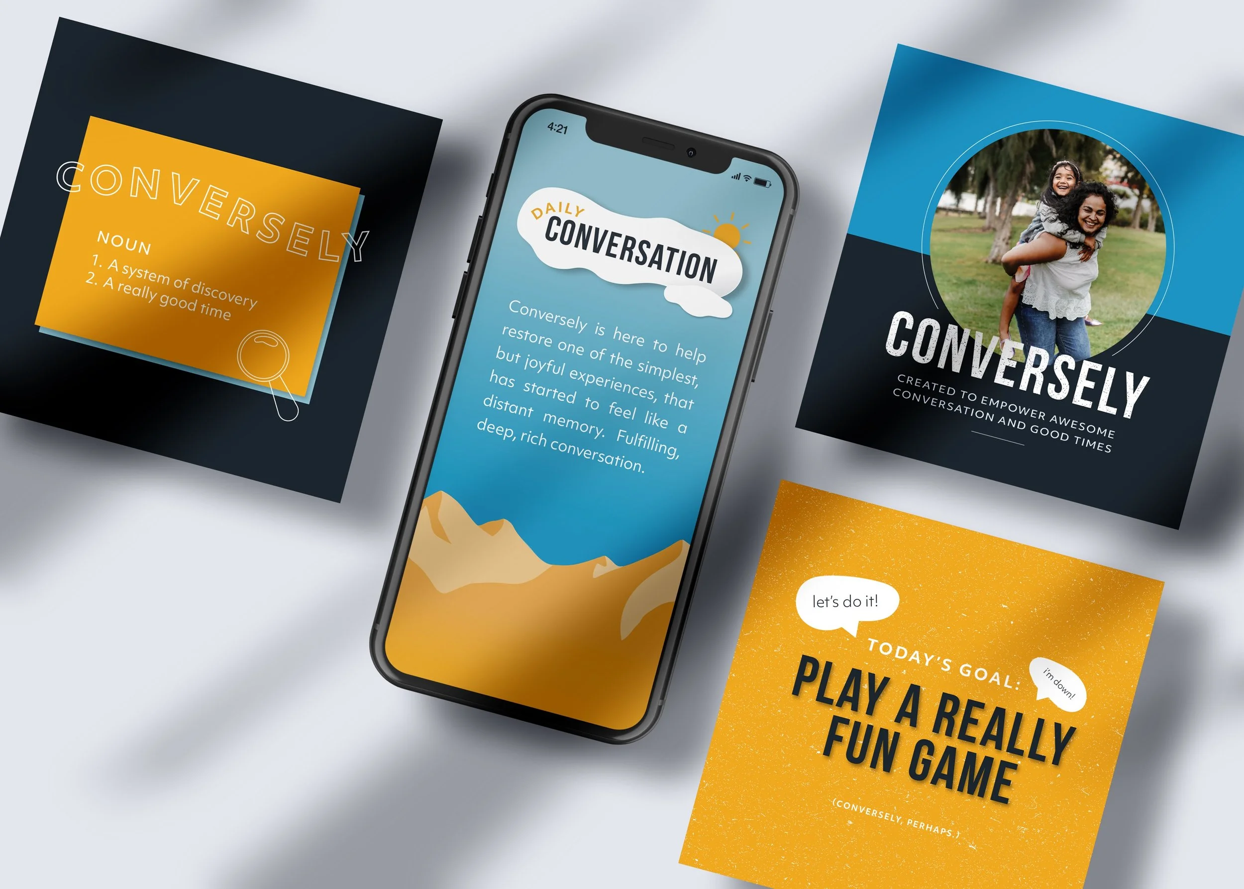 Supporting Conversely’s brand identity with a set of brand guidelines, brand strategy, and social content was a pleasure. The job focused on capturing the energy of connection, highlighting moments when the process of playing a card game can turn into a meaningful, memorable exchange.